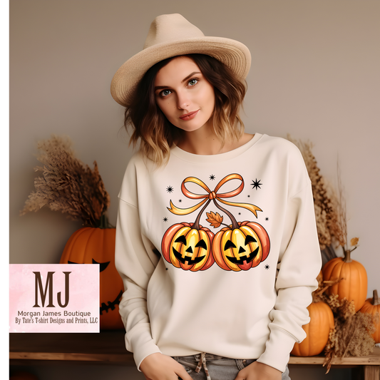 Double Pumpkin Bow Sweatshirt – Cute Fall & Halloween Crewneck