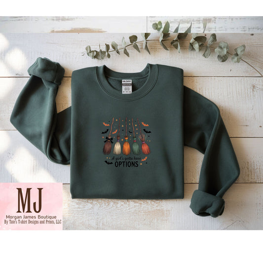 A Girl’s Gotta Have Options Sweatshirt – Halloween Witch Broom Crewneck