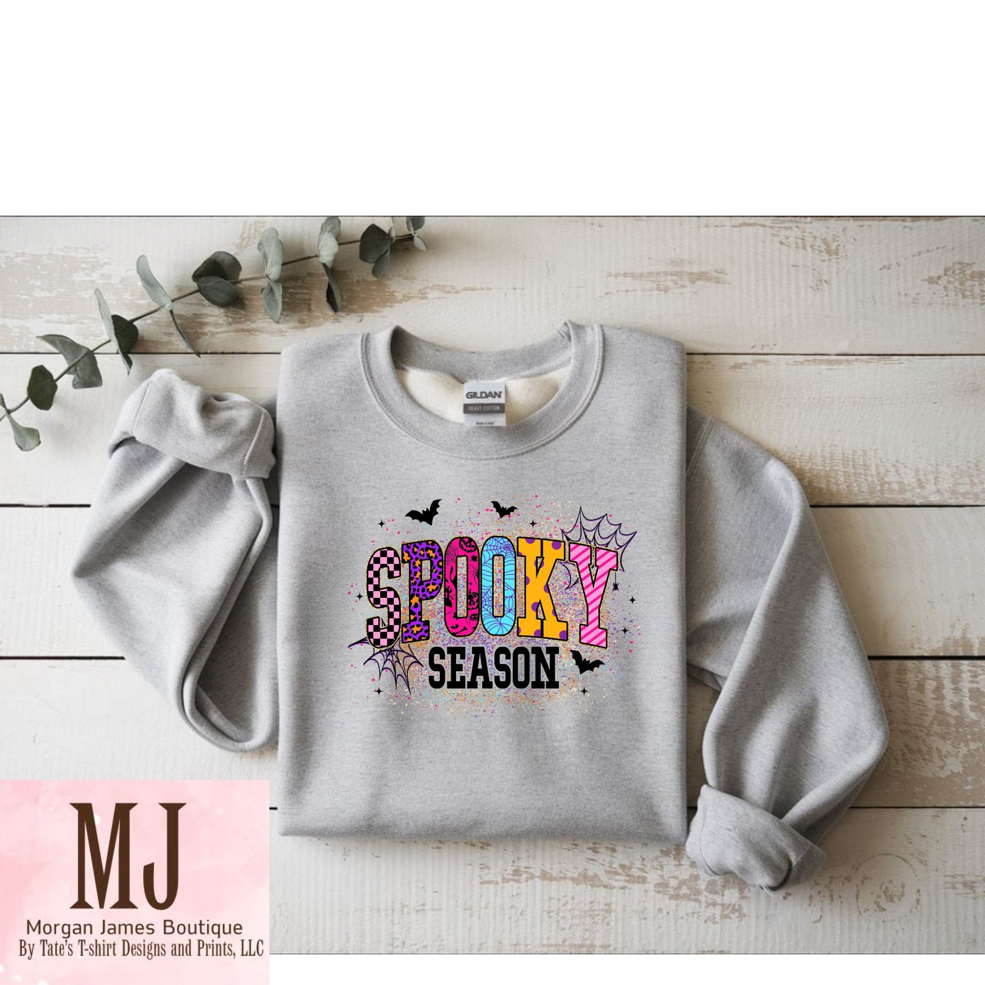 Get cozy and festive this fall with our Spooky Season crewneck! Featuring a playful mix of bright Halloween colors, spider webs, bats, and fun patterns — this sweatshirt is perfect for pumpkin patch days, trick-or-treat nights, or just lounging in spooky style.